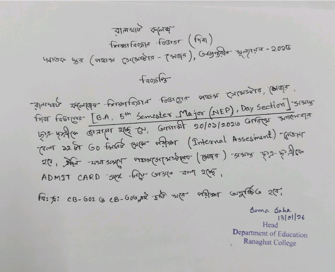| 2 | UG 5th semester Bengali & History (Morning Section) 5th Sem Internal Assignment | 19/01/2026 | 31/12/2026 |  |