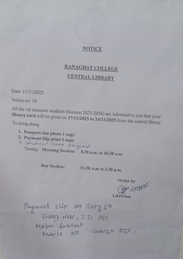 | 2 | Ranaghat College Central Library Notice | 18/11/2025 | 31/12/2025 |  |