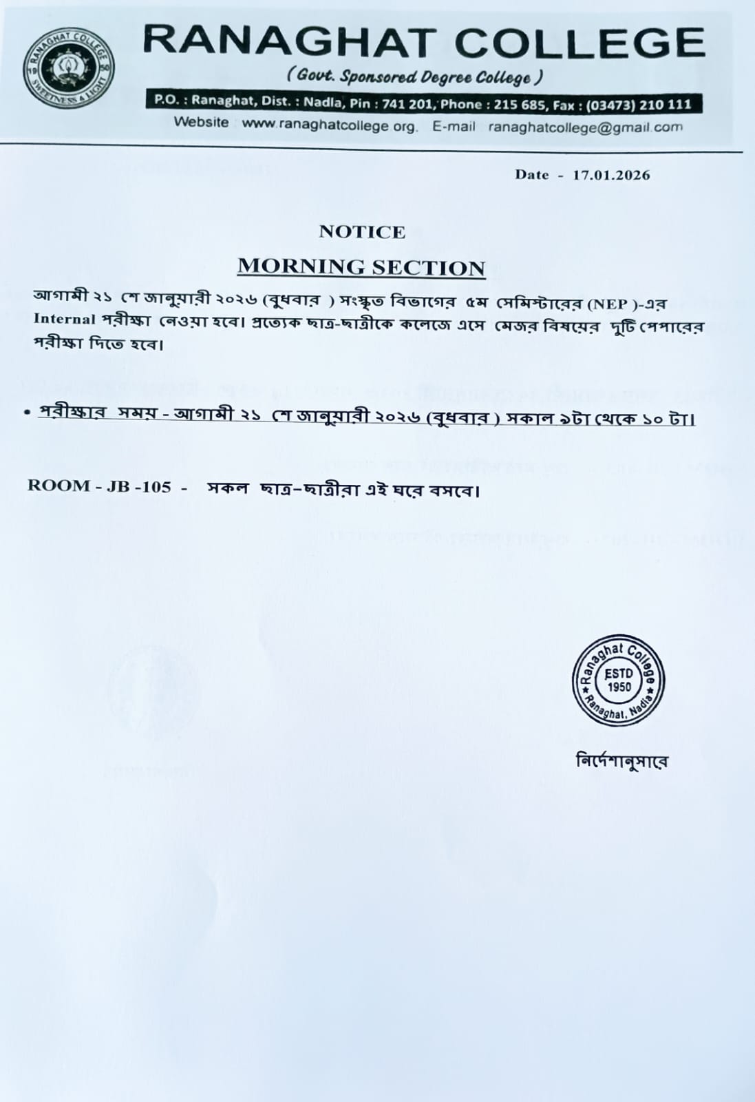 | 25 | RANAGHAT COLLEGE 75 YEARS PROGRAM DETAILS | 24/12/2025 | 31/12/2026 |  |