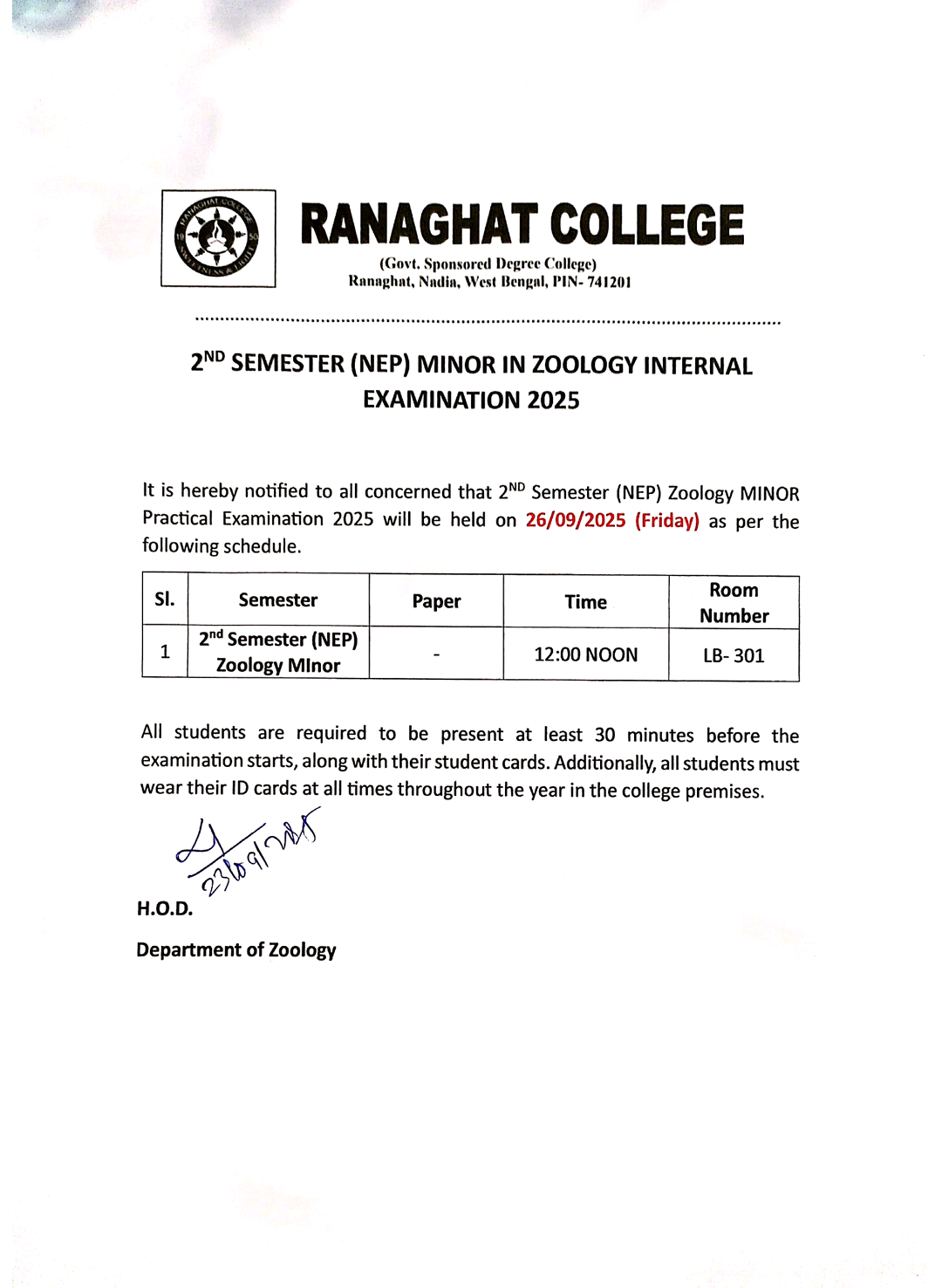 1 | UG 2nd Semester NEP Zoology Minor Practical Examination | 23/09/2025 | 31/12/2025 |  |
