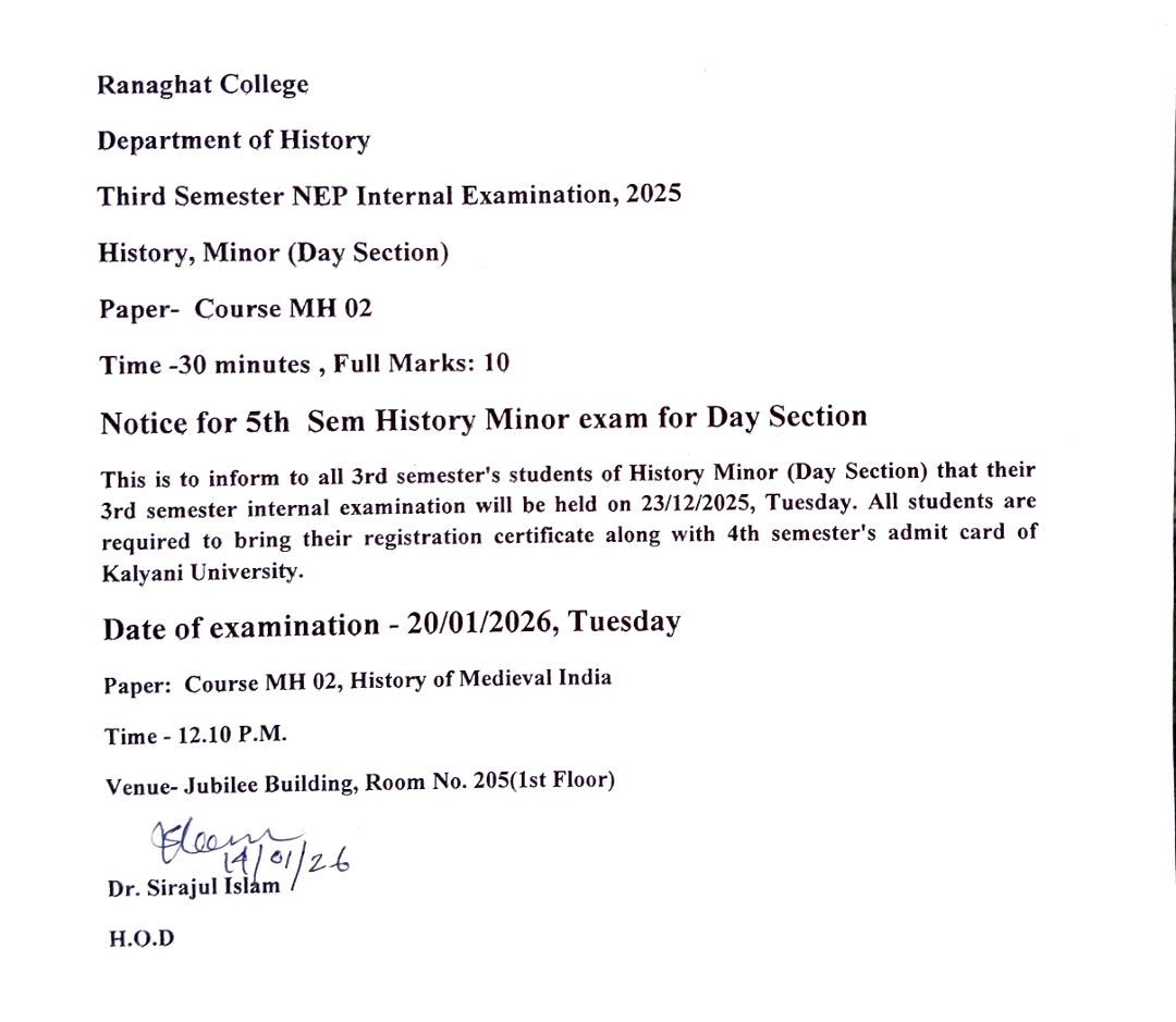 | 32 | Notice for 5th Sem History Minor exam for Day Section | 18/12/2025 | 31/01/2026 |  |