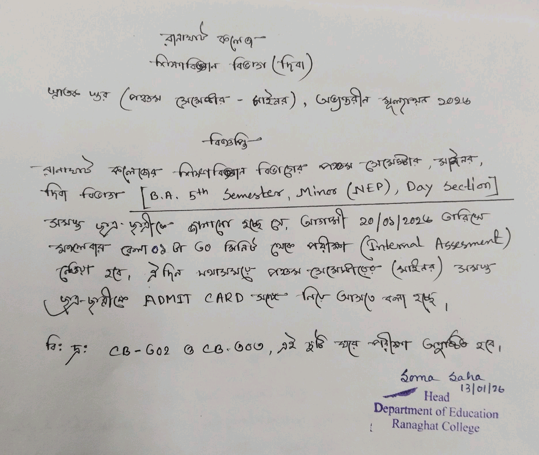 | 16 | UG 5th Semester Major NEP Internal Assessment Education Day Section | 13/01/2026 | 31/12/2026 |  |