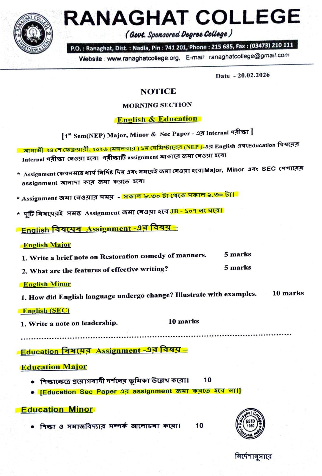 Reopen UG 3rd Semester CBCS Examination Admit Card Distribution    Reopen UG 3rd Semester NEP Examination Admit Card Distribution Notice     UG 1st Semester Physical Education Major & Minor Internal Examination     UG 1st Semester Minor Morning Internal Examination (NEP)    UG 1st Semester Major Morning Internal Examination (NEP)    2025-26 UG 1st Semester ID Card Distribution,2025