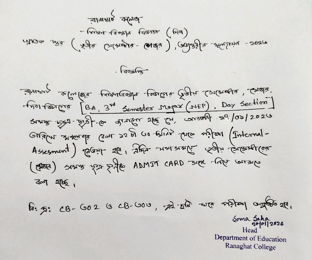 | 8 | UG 3rd Semester Major Bengali Internal Assessment,2025 | 21/01/2026 | 31/12/2026 |  |