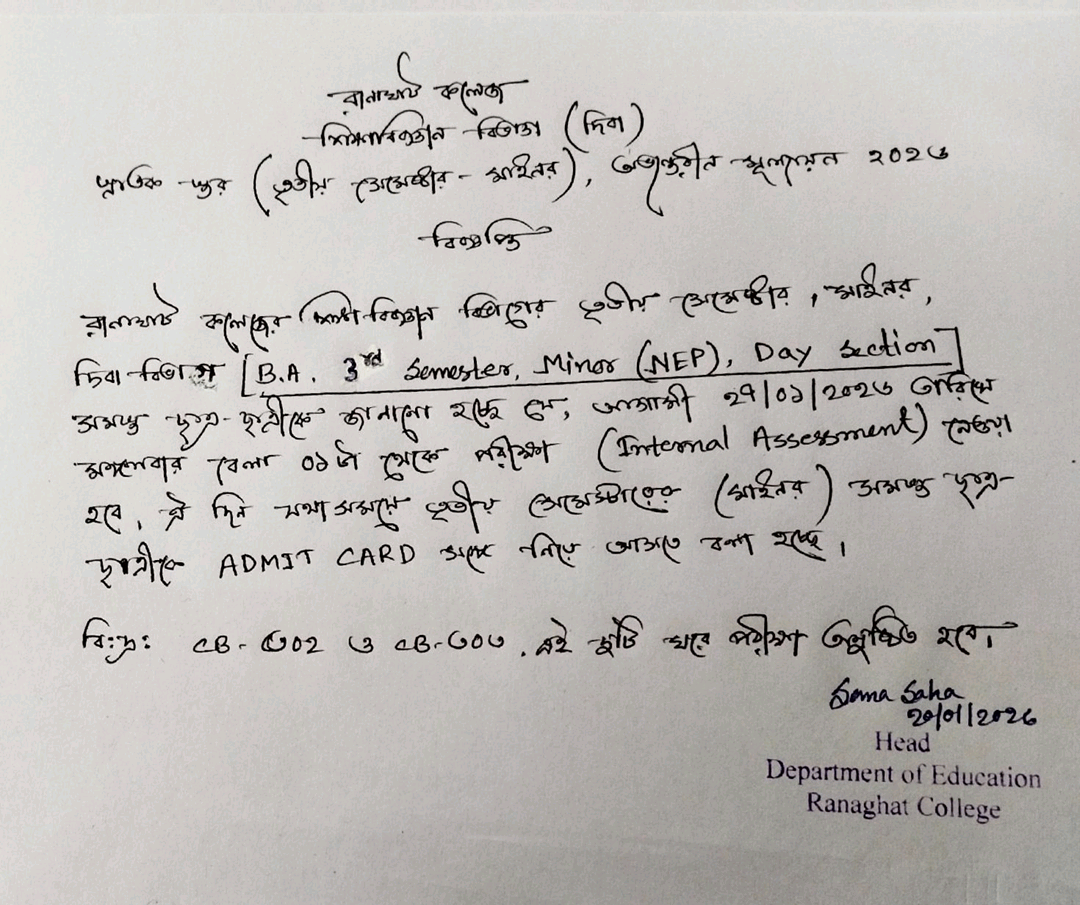 | 7 | UG 3rd Semester Minor Education Day Section Internal Assessment | 21/01/2026 | 01/01/2027 |  |
