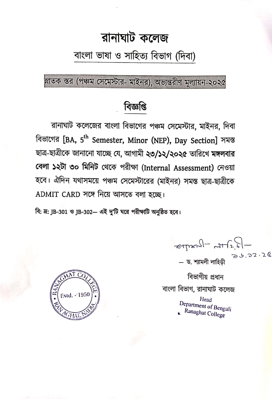| 40 | UG 5th Semester(NEP) Day Minor Internal Assesment | 16/12/2025 | 31/12/2026 |  |